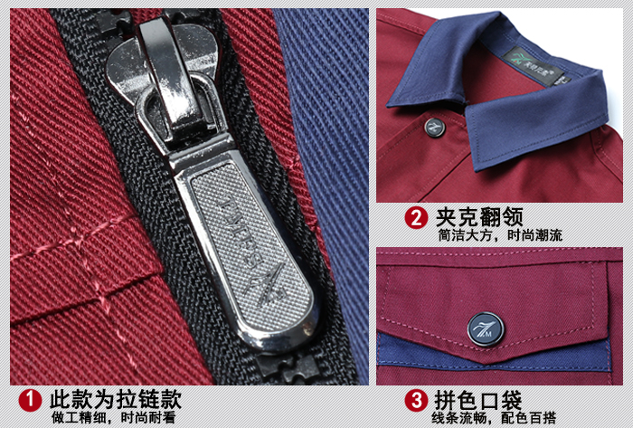 2、面料 定制時,選擇適合的面料,才能達到最佳實用性。不同的工作領域,應考慮其工作服的功能。如建筑行業,應該選用耐磨性面料;電子行業,應該選用防靜電面料。穿梭于大街小巷的外賣、快遞員,冬天需要的是防風防水保暖面料。交通運輸行業以及夜間工作者需要反光條面料設計。在選擇面料時還要考慮面料的固色性、耐用性、縮水性、酸堿性等方面。 工作服一般選擇棉質面料,特別是棉和其他纖維混紡的面料,穿著起來舒適親膚,有著很好的吸濕透氣性、排汗性,健康環保,工作服穿著是否合理,會直接關系到人體健康。