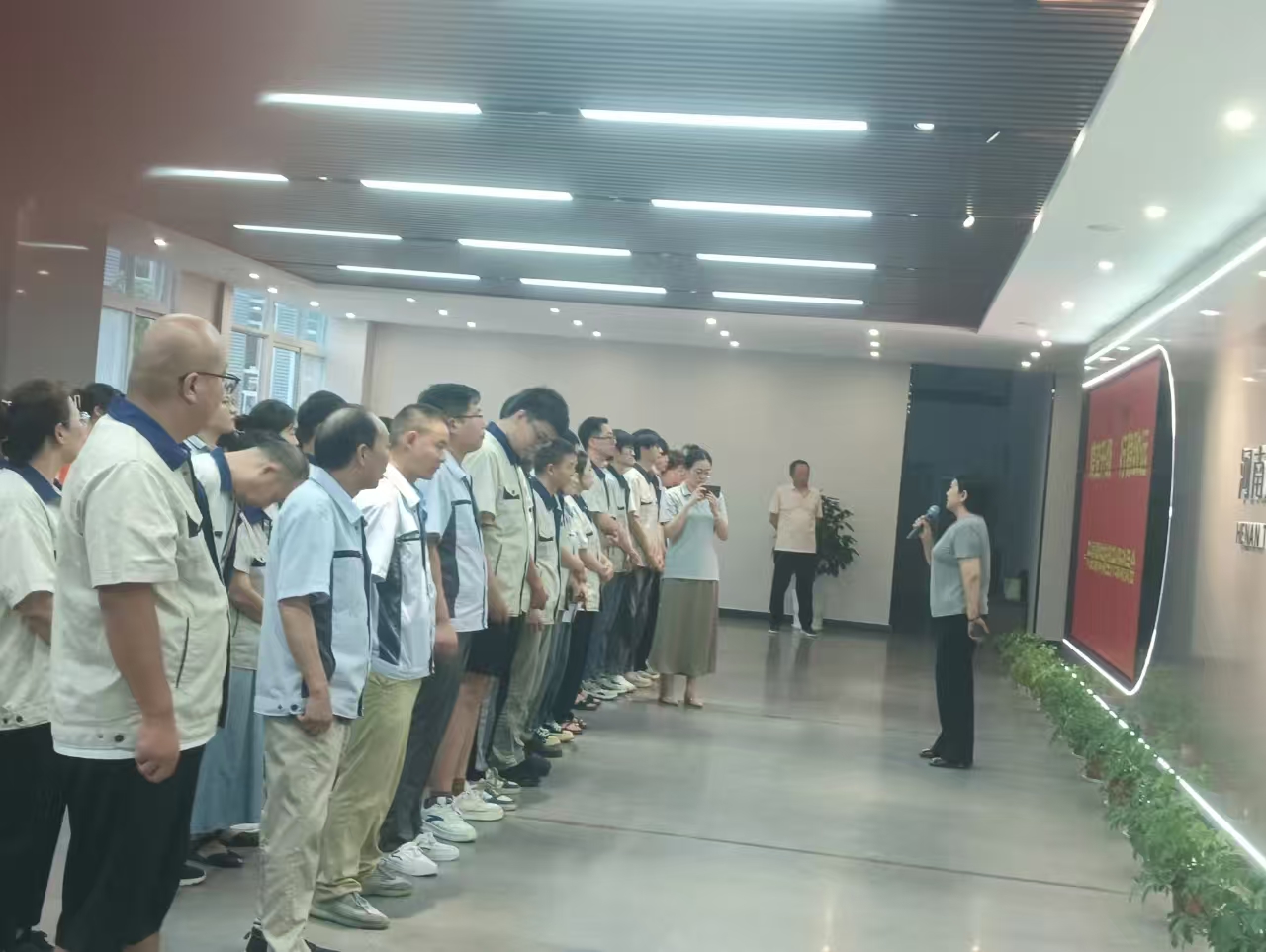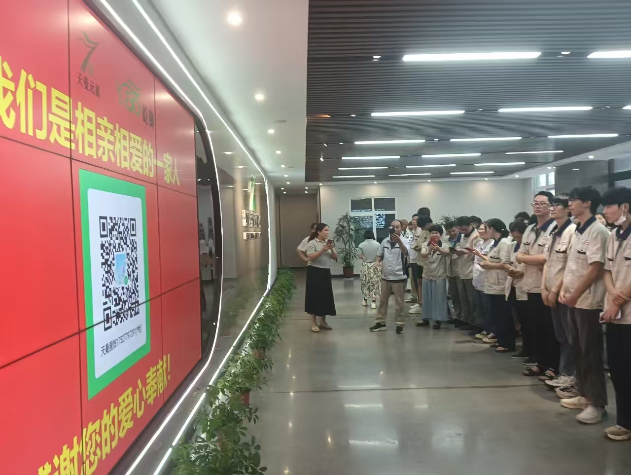 2024年7月29日下午,室外的暑熱壓得人喘不過氣,河南天曼服飾智能化工廠的大廳正在舉行一場全員捐助、救助患病員工的愛心行動,清爽莊嚴的大廳響起一曲“相親相愛的一家人”,醒目的大屏上宣示著公司的愿景使命價值觀,“為員工打造幸福成長的平臺”格外感到親切溫暖。