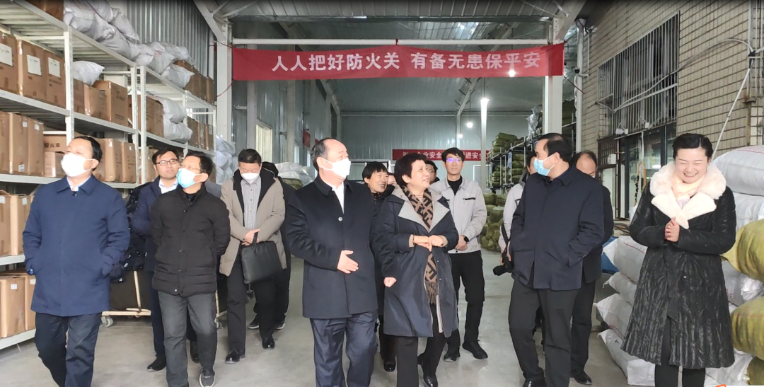 公司董事長郭靜麗陪同縣委、政府領導視察車間年后開工生產情況,匯報公司2023年度生產經營計劃