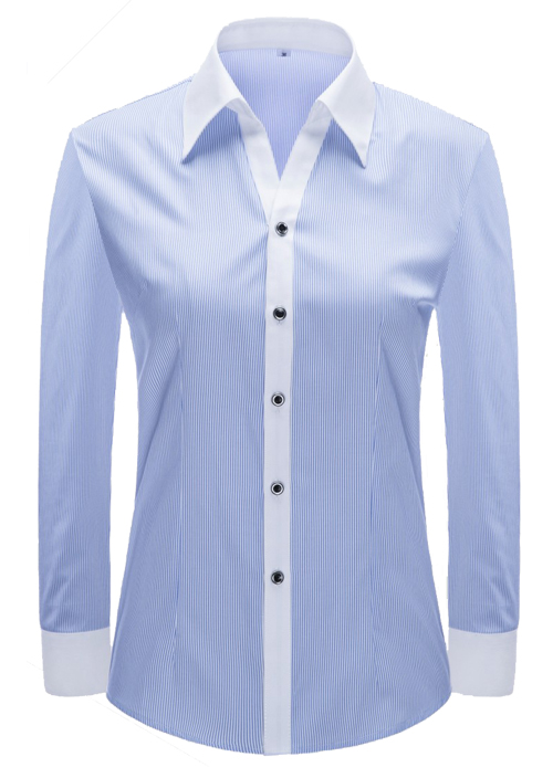 品名:女長袖v領(lǐng)襯衣;版型:修身版;貨號:YW3501 ;面料:Y3501;顏色:藍(lán)色細(xì)堅紋 ;Fabric:C35/T65